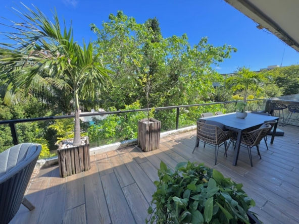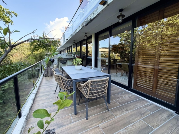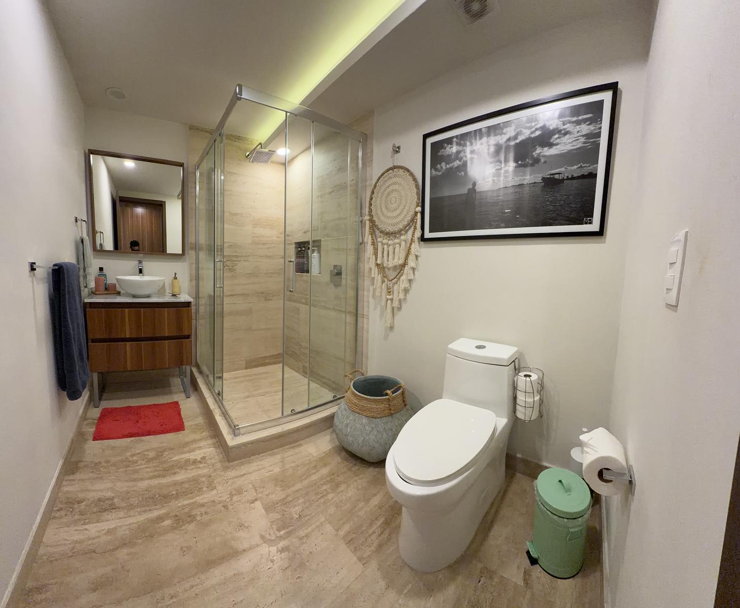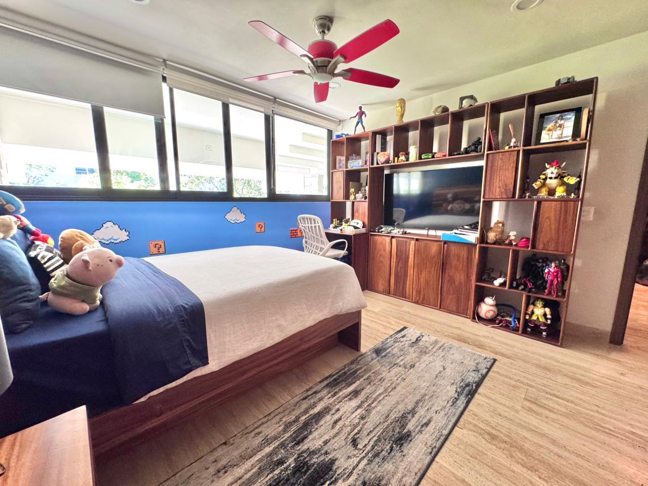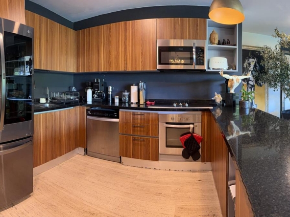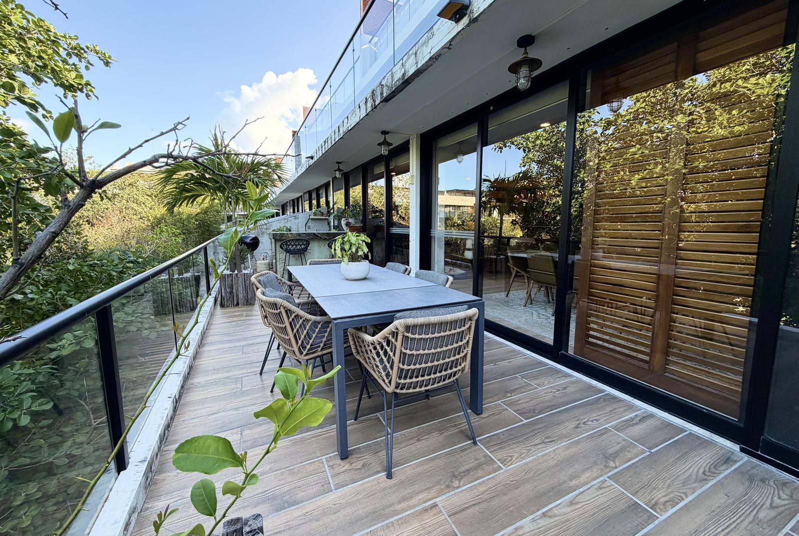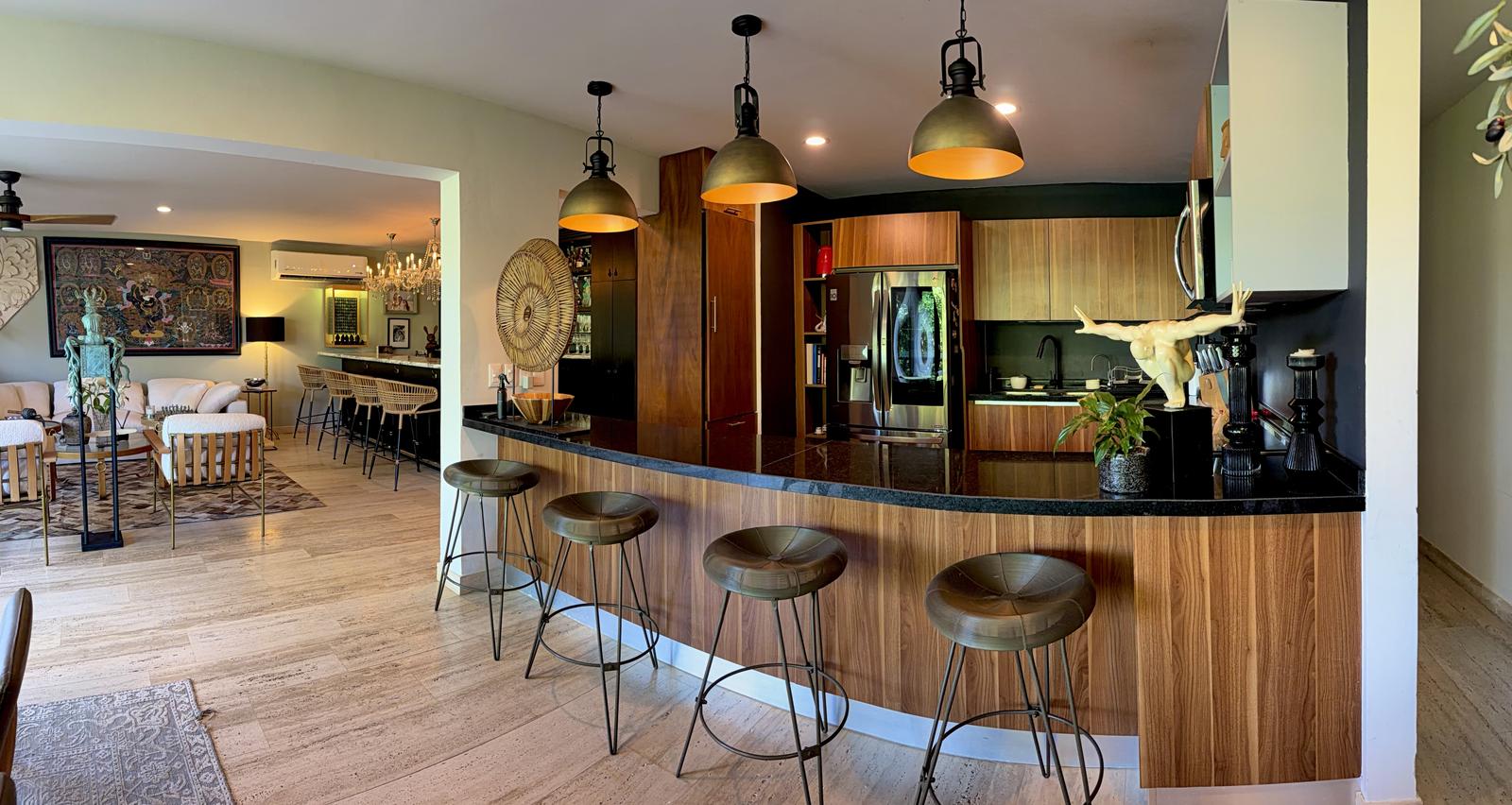 La propiedad ofrece una sala–comedor de gran amplitud, integrada a una terraza generosa, ideal para reuniones y para disfrutar de un estilo de vida interior–exterior. Cuenta además con un bar integrado y una cocina funcional y bien proporcionada, diseñada para acompañar cómodamente la vida social del departamento.